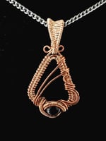 2.5 Ct. Hessonite Garnet cabochon hand wrapped in copper wire. Pendant is 1.5 inches tall and 1 inch wide. Chain not included.